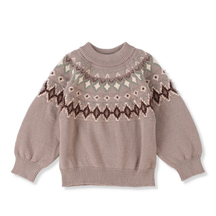 冬らしいヨーク柄が目を引く、あたたかみのあるキッズセーター。