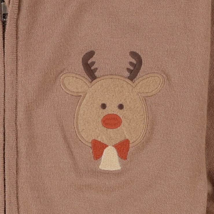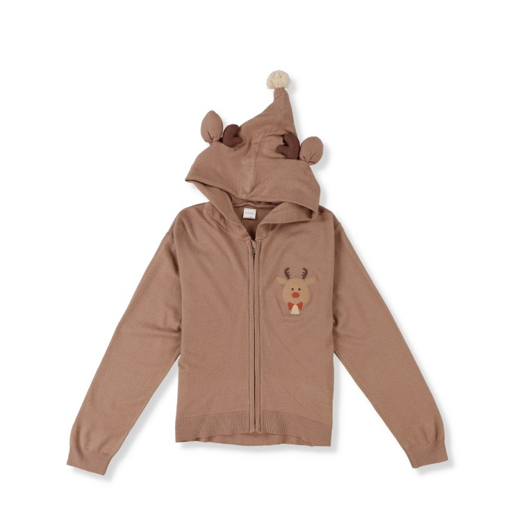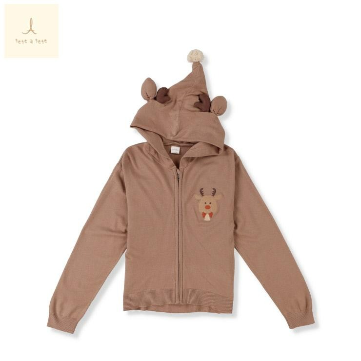 トナカイをイメージしたフードデザインにフロントのニットアップリケデザインがかわいいです。