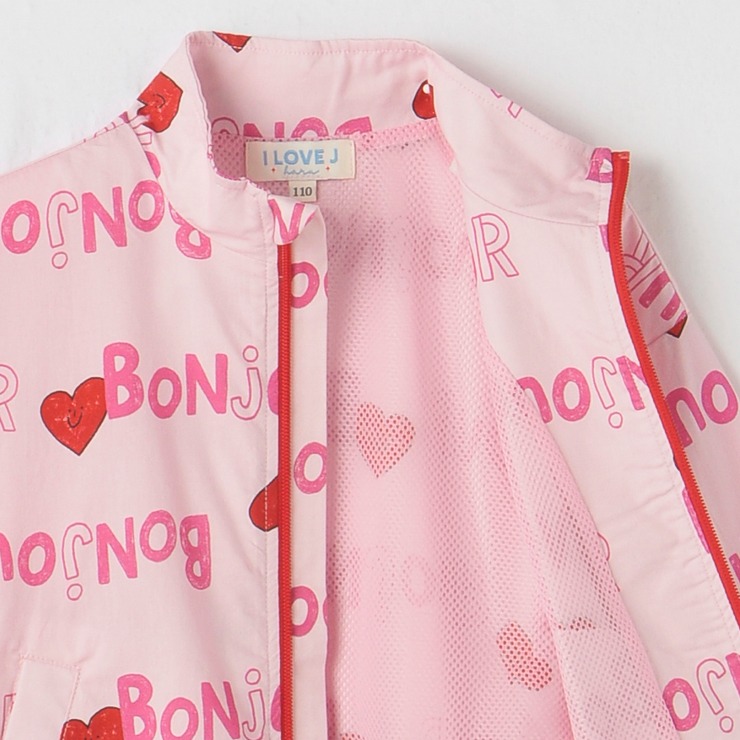 手書き風のデザインがかわいいジャケットです。女の子はハート、男の子は星で、お揃いもできちゃいます!メッシュの裏地付きで着心地も◎。