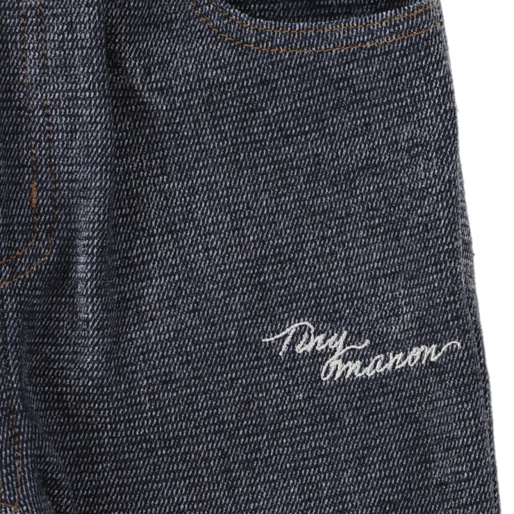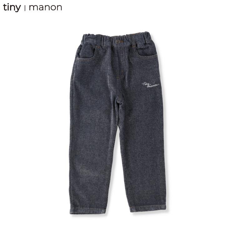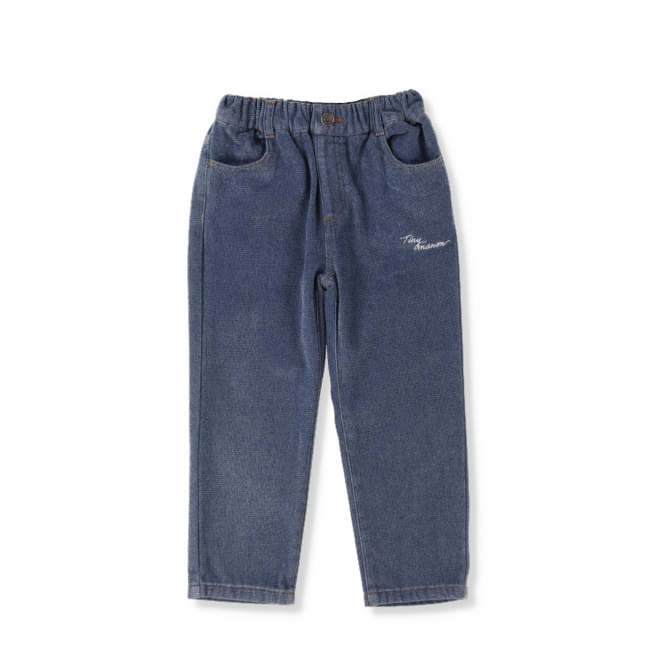 さりげないロゴ刺繍がポイントのキッズデニムパンツ。