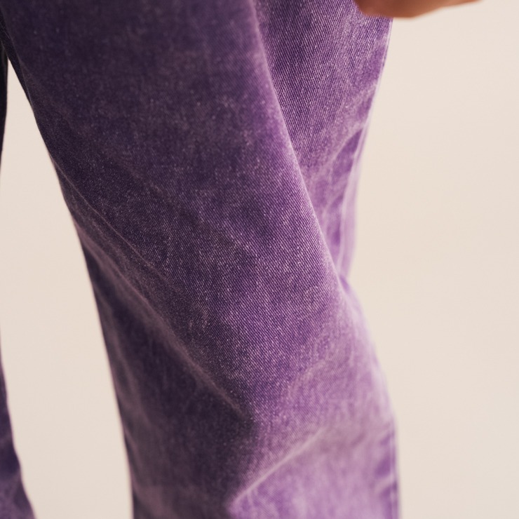 明るいカラー使いにケミカル洗いの雰囲気のある色落ち感がおしゃれです。