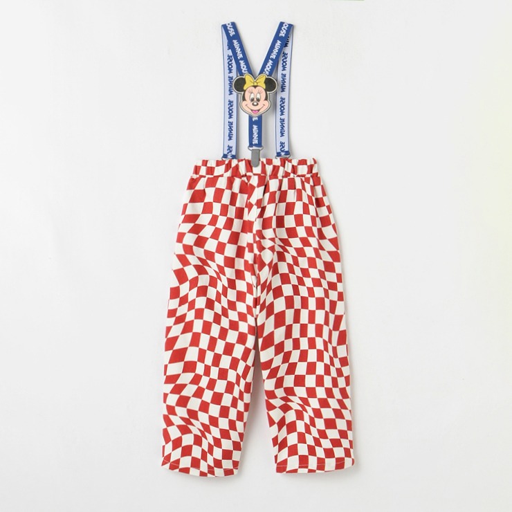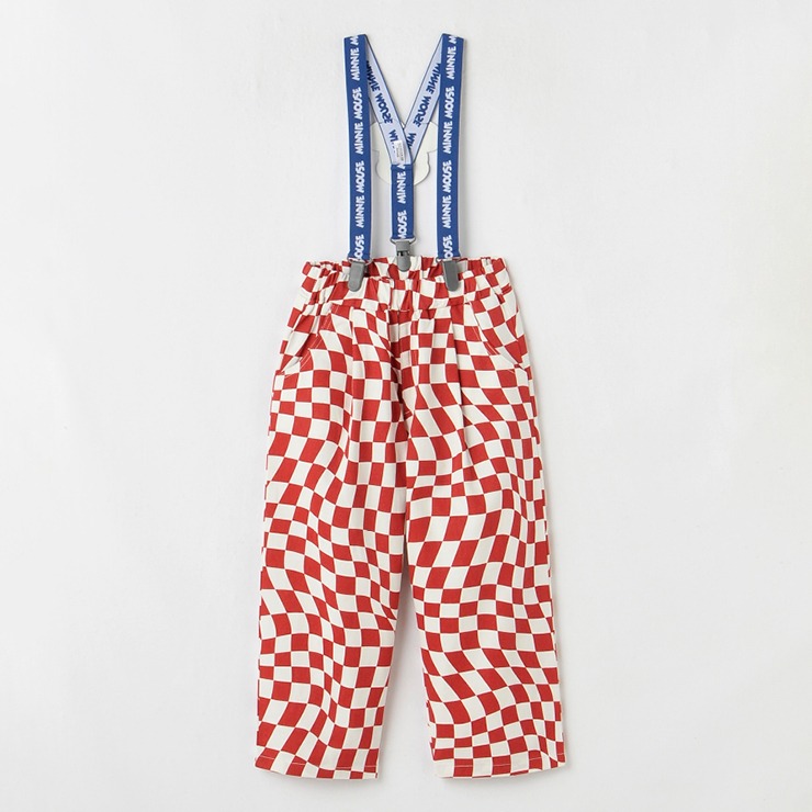 ポップな総柄プリントになっています。ロゴのサスペンダーには「ミニー」のワッペンがついています。
