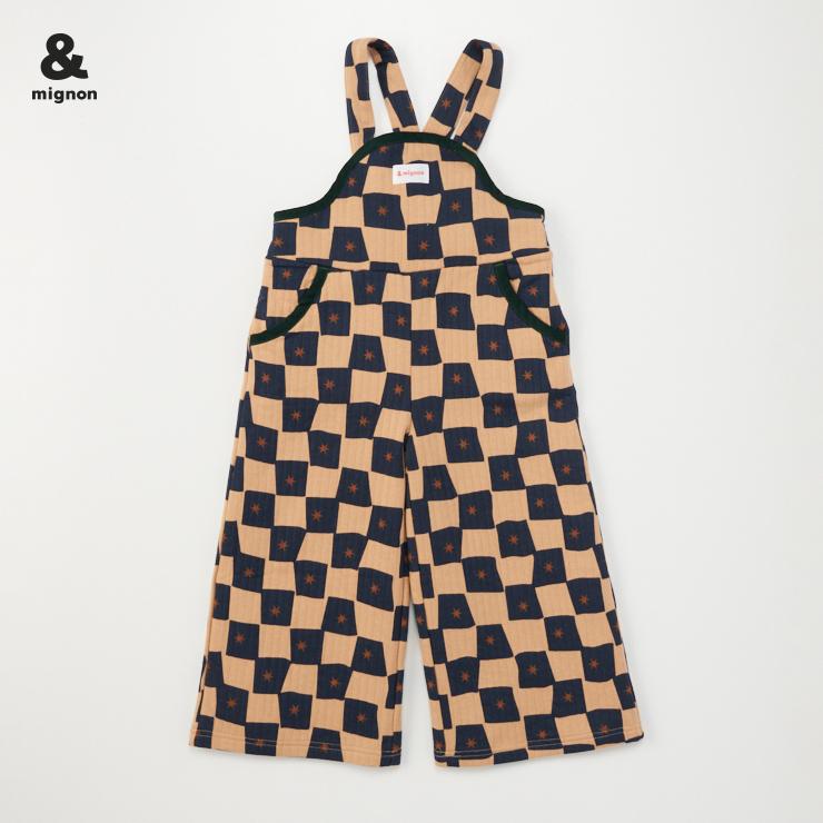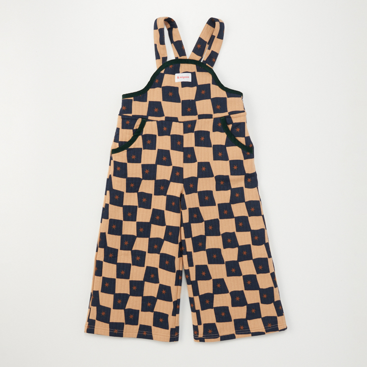 中綿入りのキルティング仕様であたたかみのあるサロペットです。
