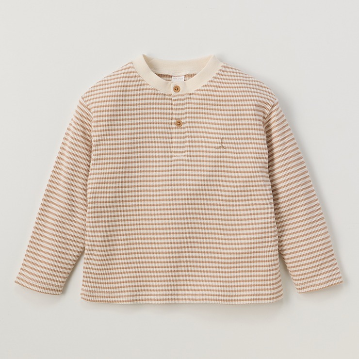 ベージュのボーダー柄にさりげない刺しゅう使いがアクセントになっています。