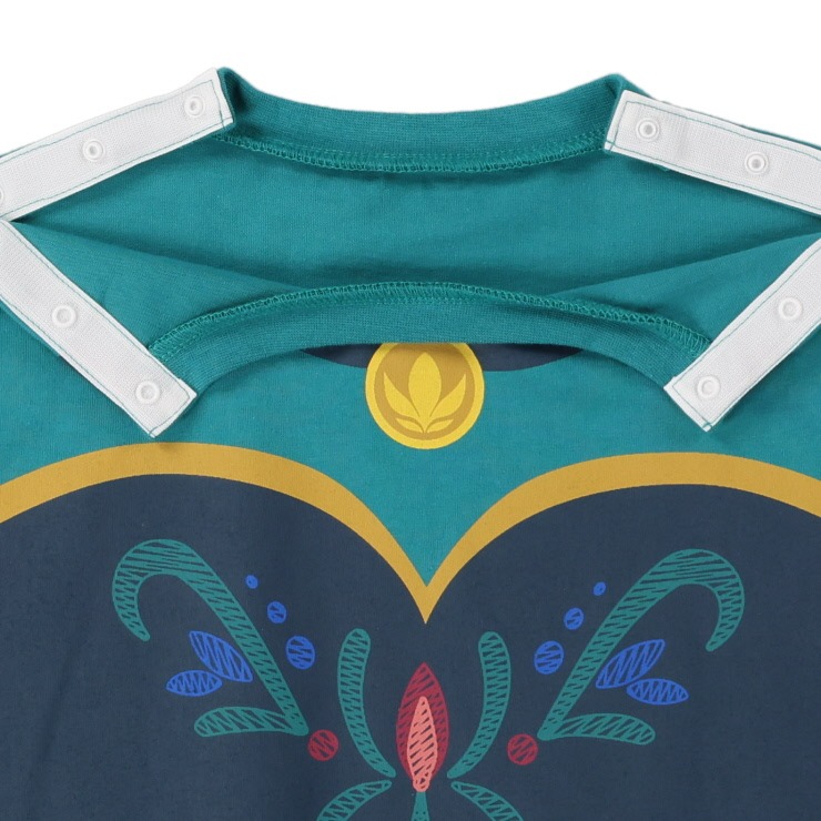 また、大きく開くことで顔周りの医療的ケアに引っかかりにくくなっています。抱きかかえた時に背中が出ないように着丈を長めにしてあります。