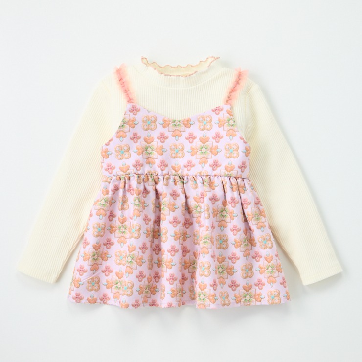 アイシングクッキーの総柄プリントがかわいい重ね着風のトップスです♪