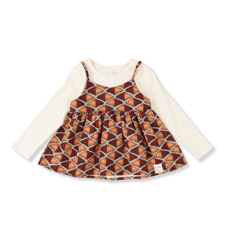 おいしそうなクロワッサンをプリントした重ね着風のトップスです。