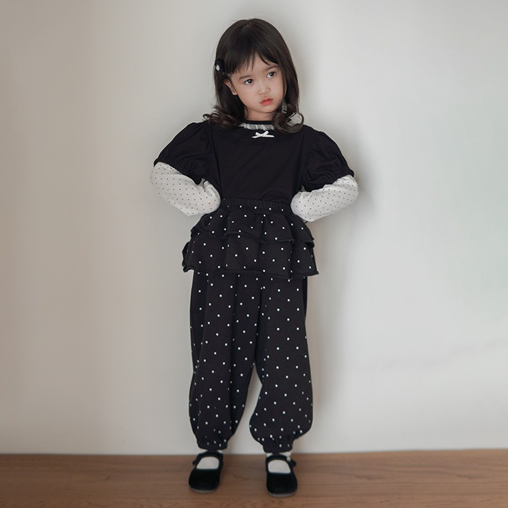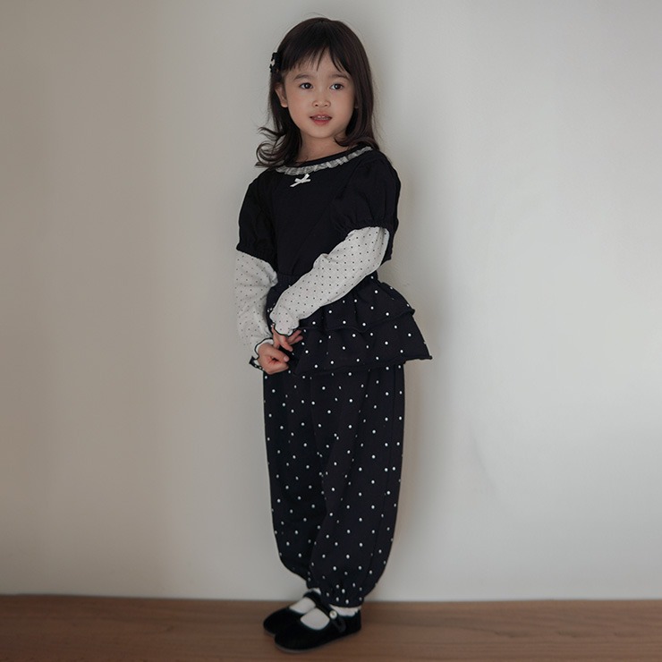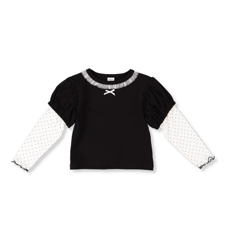 ドット柄と胸元のサテンリボンが目を惹くプルオーバーです!