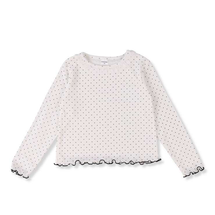 プルオーバーの襟ぐりにはオーガンジーフリルをあしらい、