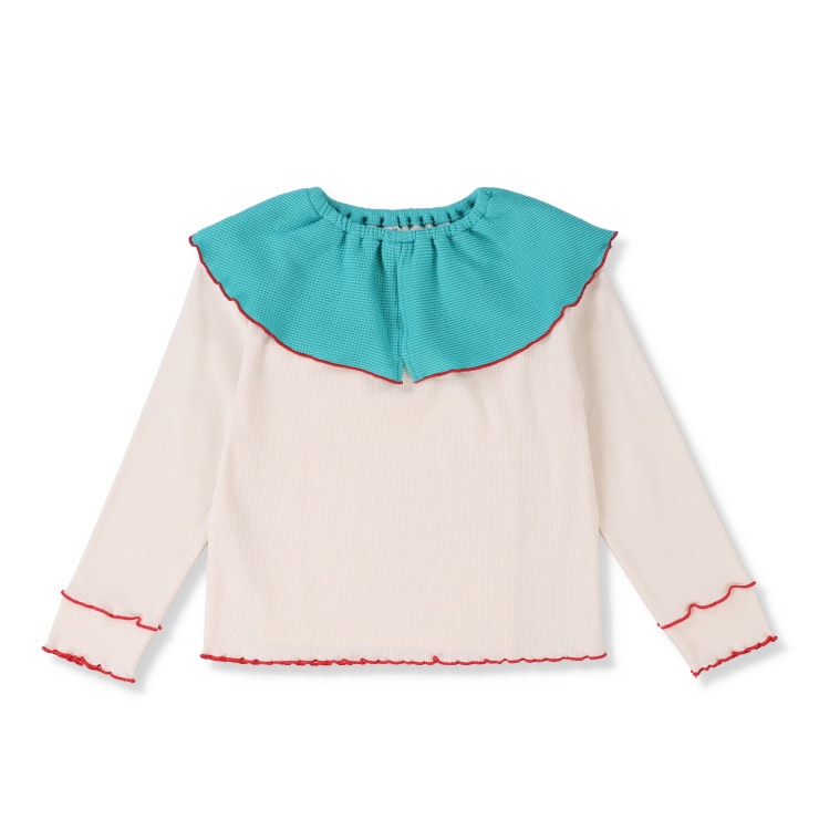 ワッフル素材の大きな衿が特徴的な