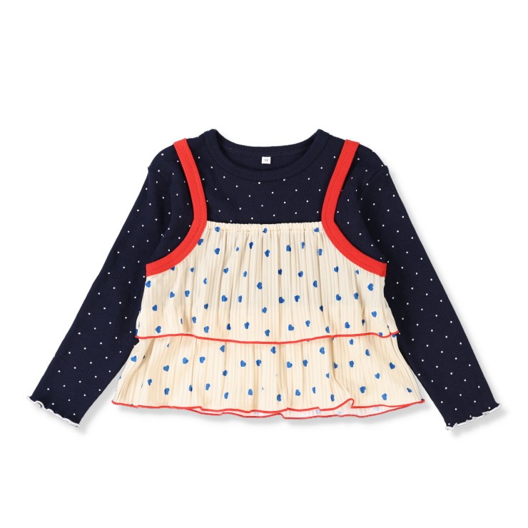 リズミカルな配置のブルーのハート柄が目を惹くトップスです。