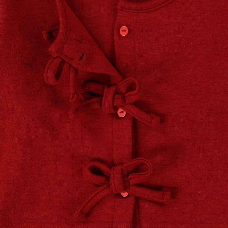 リボンは固定されており、ボタンでの前開き仕様で着脱しやすいデザインです。
