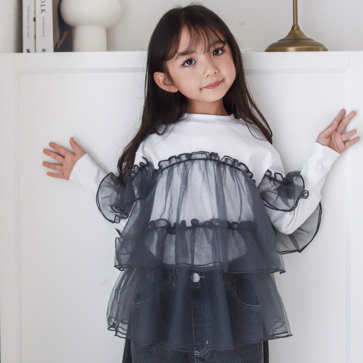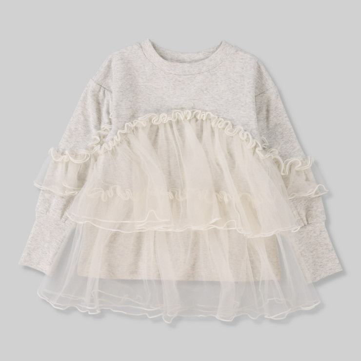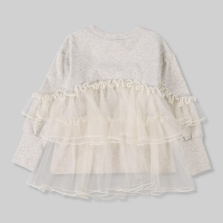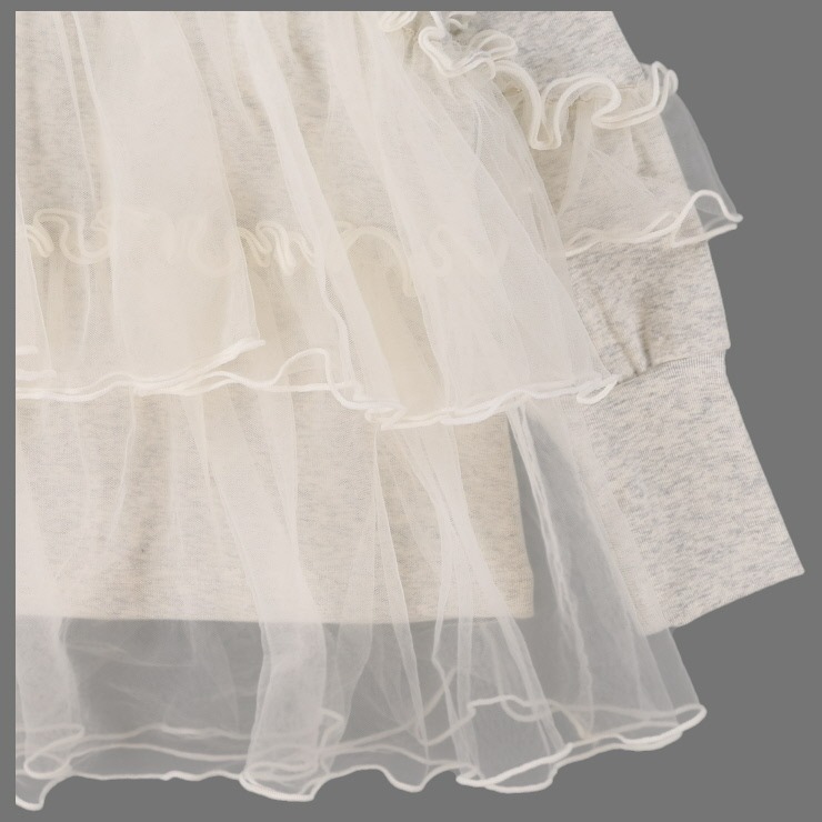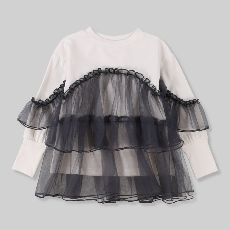 チュールを使ったフリルに配色のメロウ加工を施しておりとってもかわいいです。