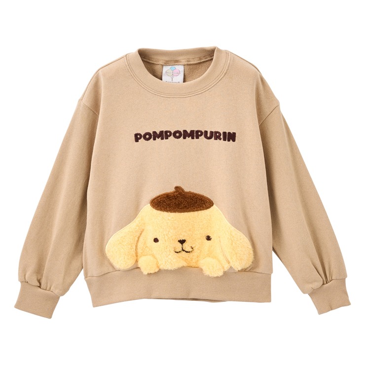 「ポムポムプリン」の立体感のあるボアアップリケがかわいいプルオーバーです。