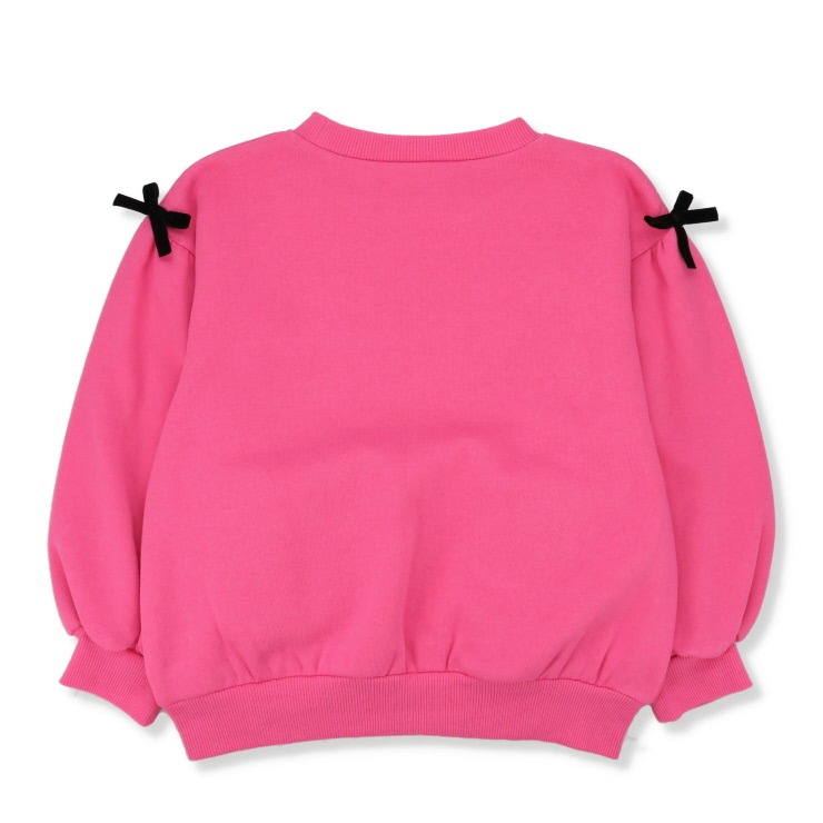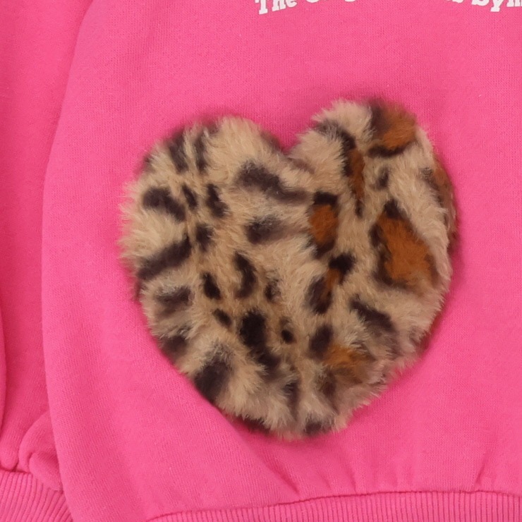 バルーンスリーブの袖に両肩にはベロアのリボン、レオパード柄ふわふわファーのハートポケット