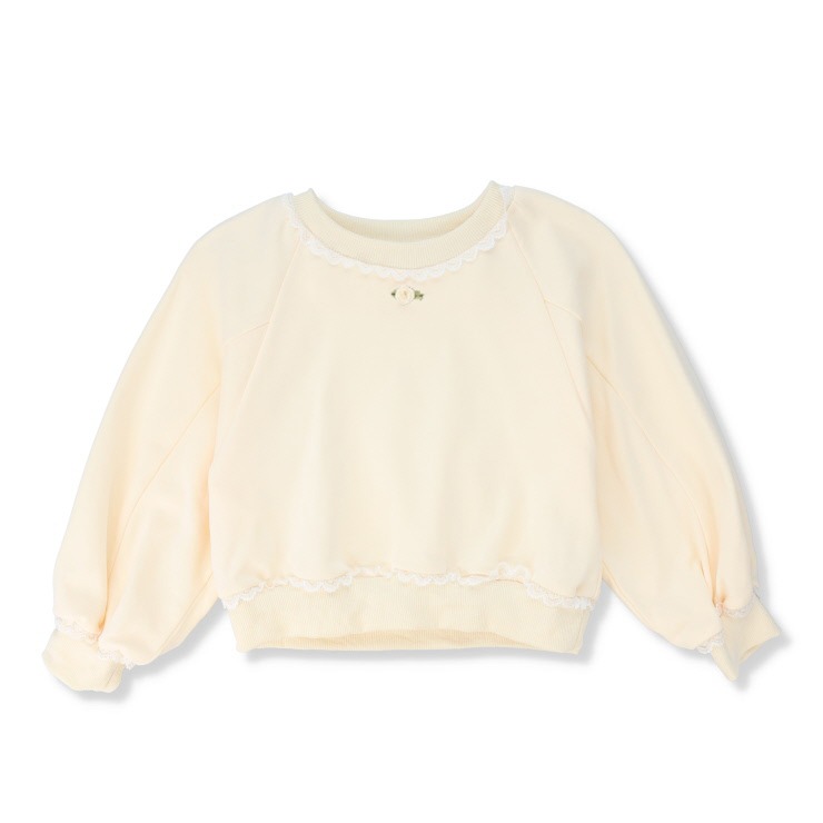 首元と裾、袖口のレース使いがガーリーな印象のプルオーバー。