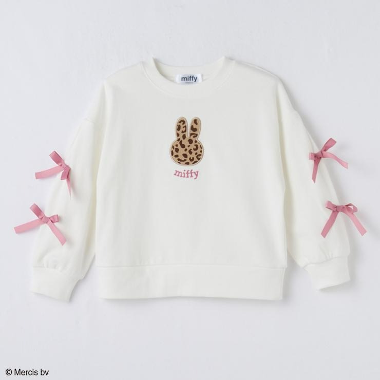 ヒョウ柄のmiffyのアップリケと袖のリボンがとてもかわいいデザインです。