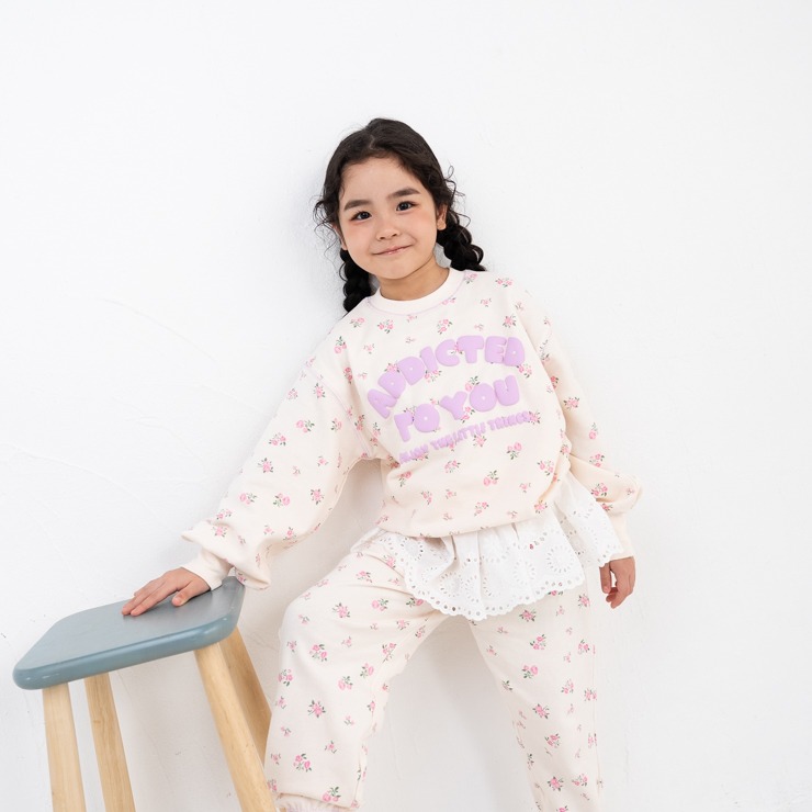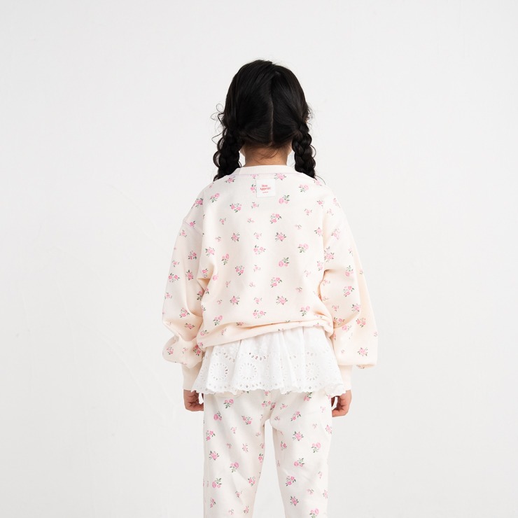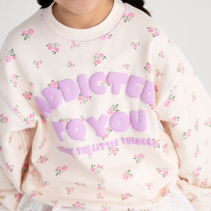 小花柄の総柄プリントにロゴプリントがのったかわいらしいデザインになっています。