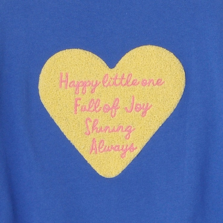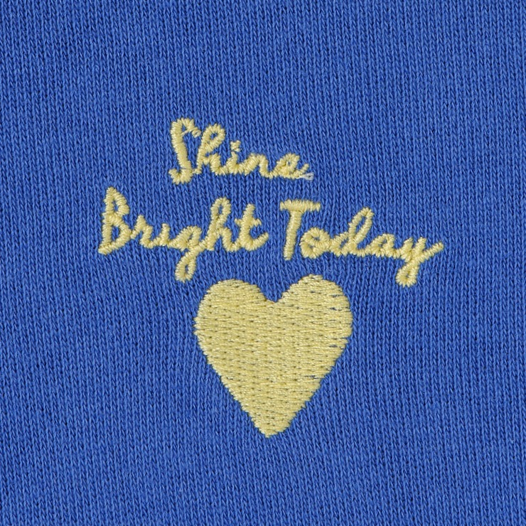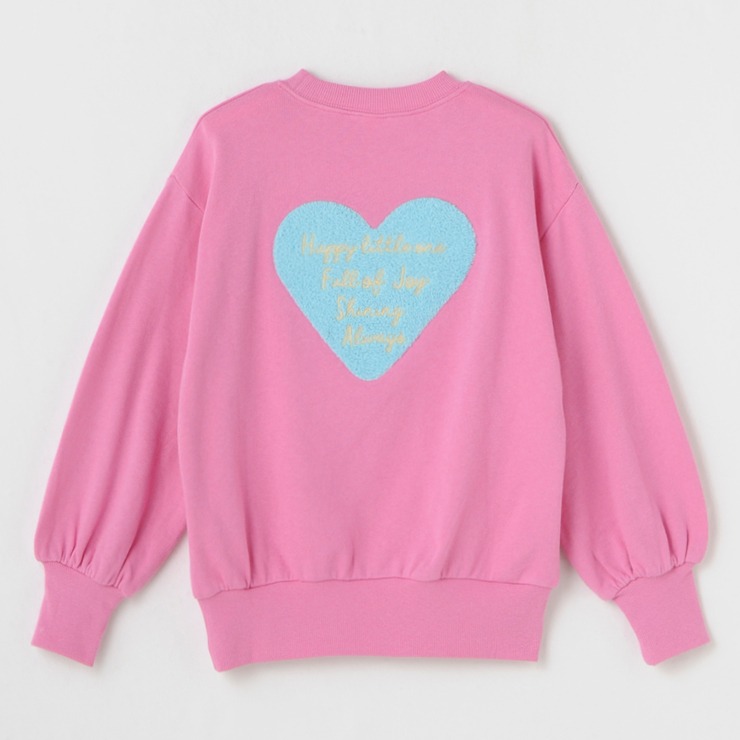 背中にのった大きなハートモチーフの立体的なサガラ刺しゅうがかわいいです。