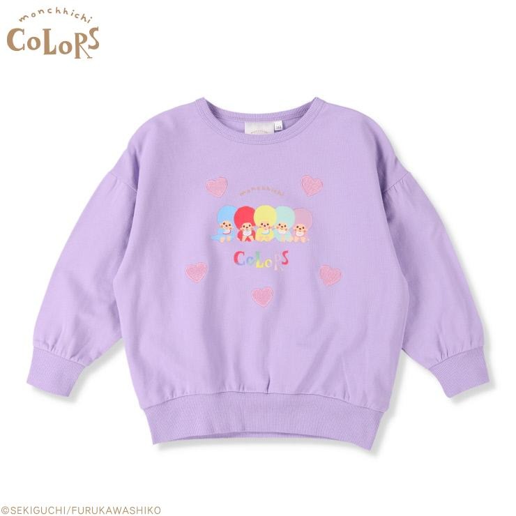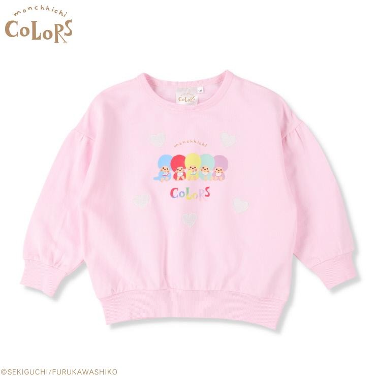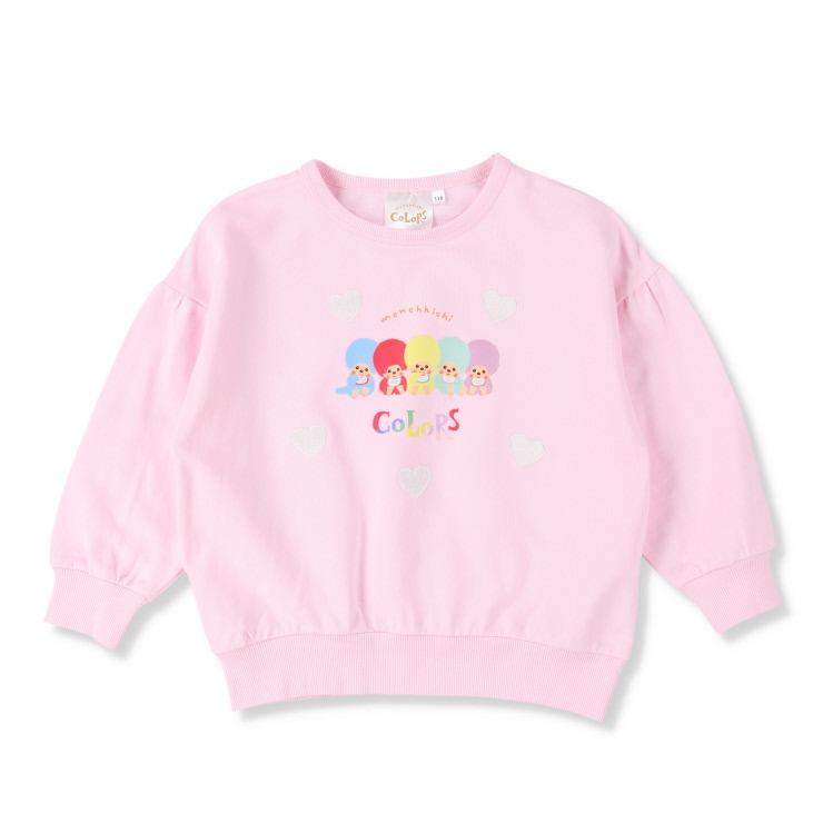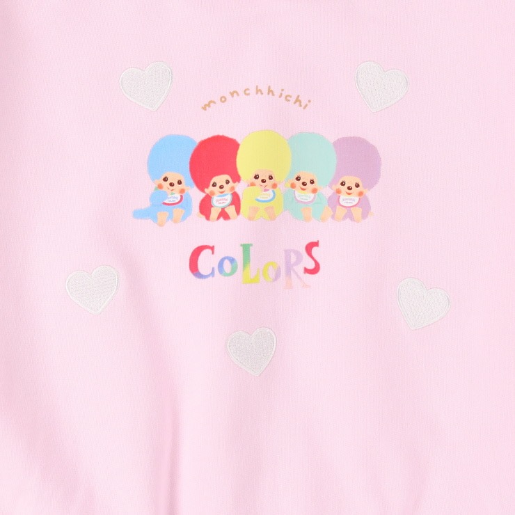 綿100%の素材で、フロントにはハートの刺しゅうに囲まれた、 カラフルなモンチッチがプリントされている、かわいいプルオーバーです。