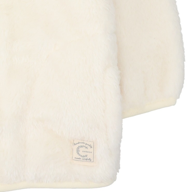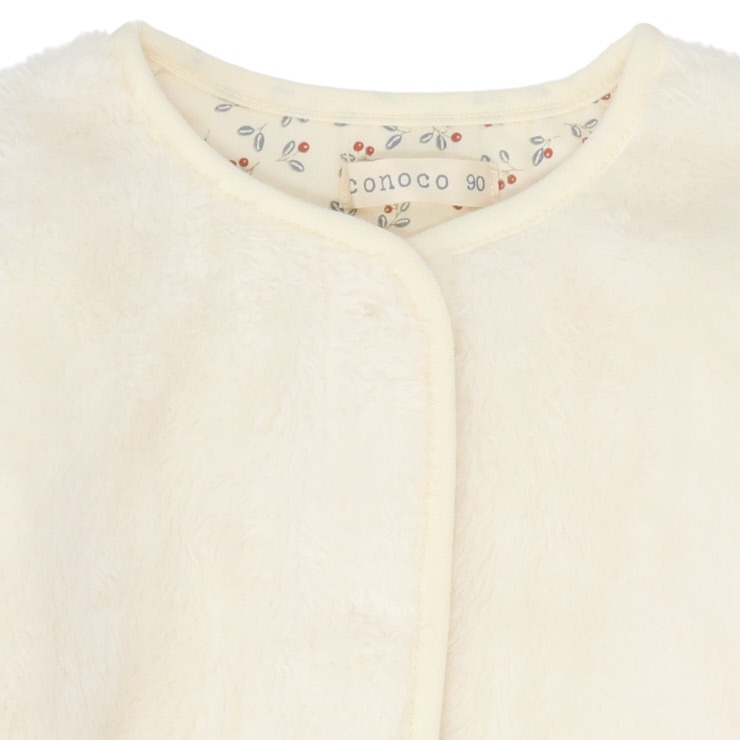 ふかふかの両面ボア素材で、見た目も着心地も温かいカーディガン。柔らかな肌触りで、デリケートな肌にも安心です。前あきホック仕様なので、お着替えもスムーズ。肌寒い季節の羽織りとしてはもちろん、室内での体温調節にも大活躍。秋冬のコーディネートに温もりを添える一着です。