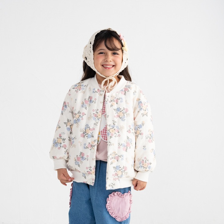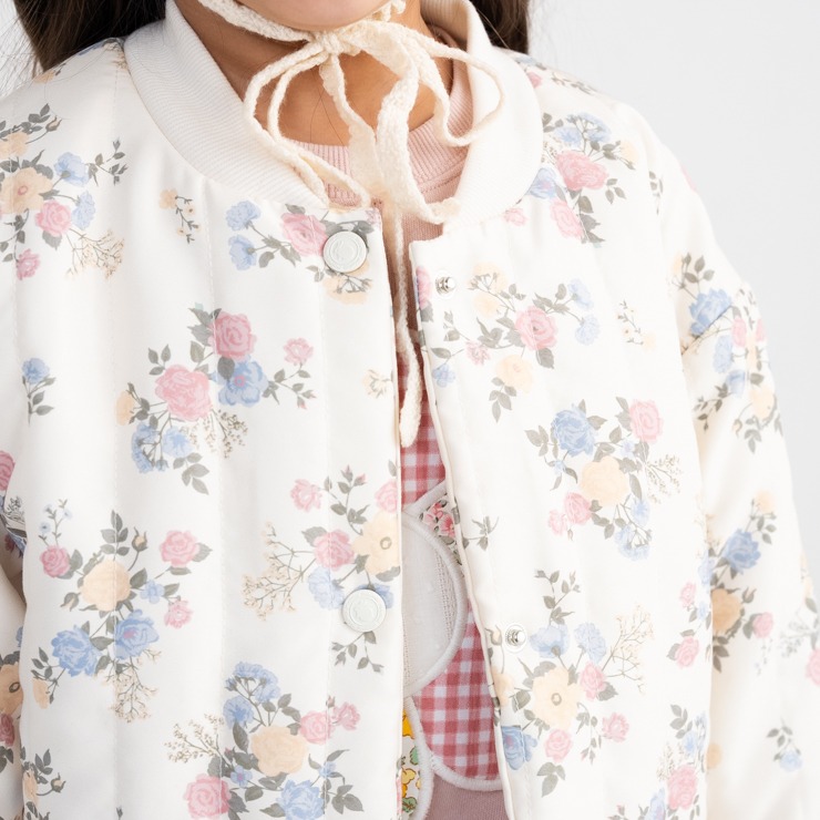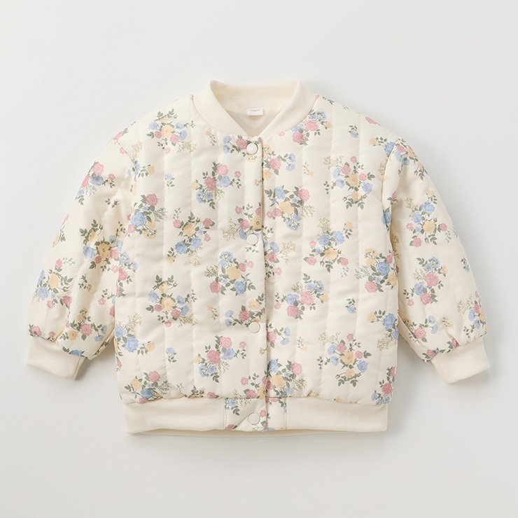カジュアルになりがちなブルゾンアイテムですがかわいらしい花柄でガーリーコーデにフィットするデザインになっています。