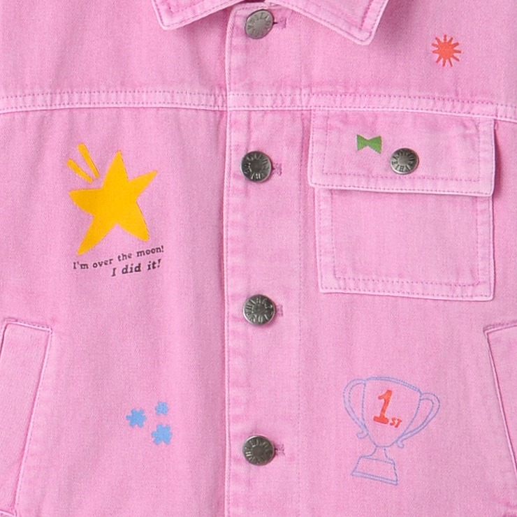 ピグメント加工でレトロポップに仕上げたジャケットは、手書き風のプリントも特徴です!コットン100%で厚手の生地ですが柔らかい仕上がりになっています。