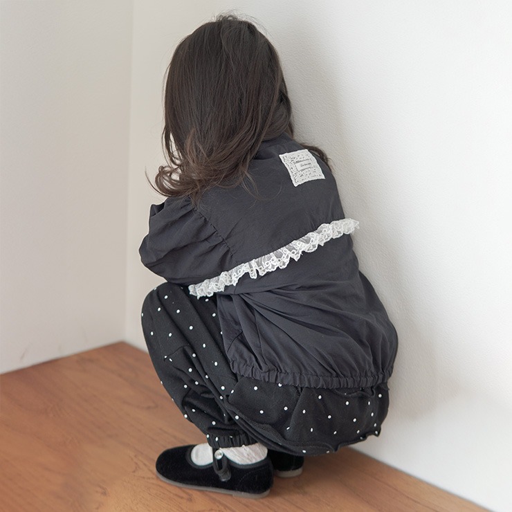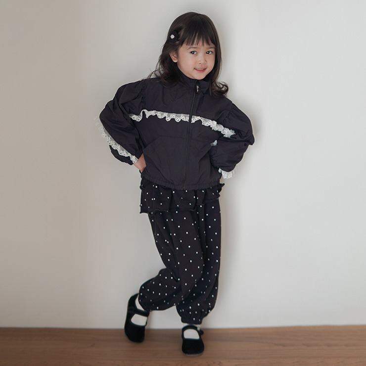 切替部分にリボン柄のレースをあしらったブルゾンです!