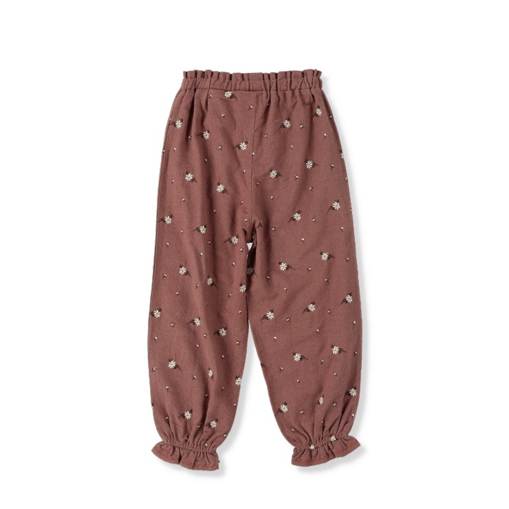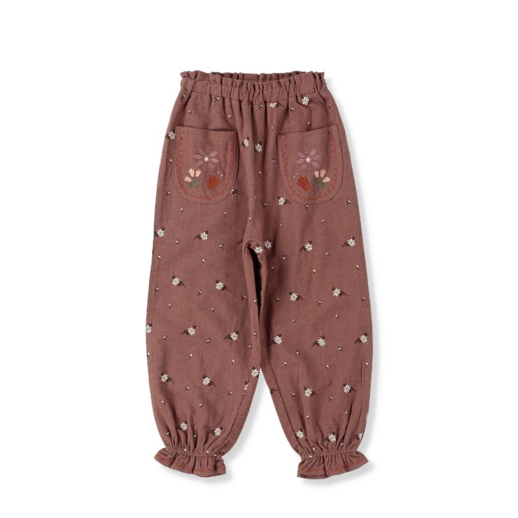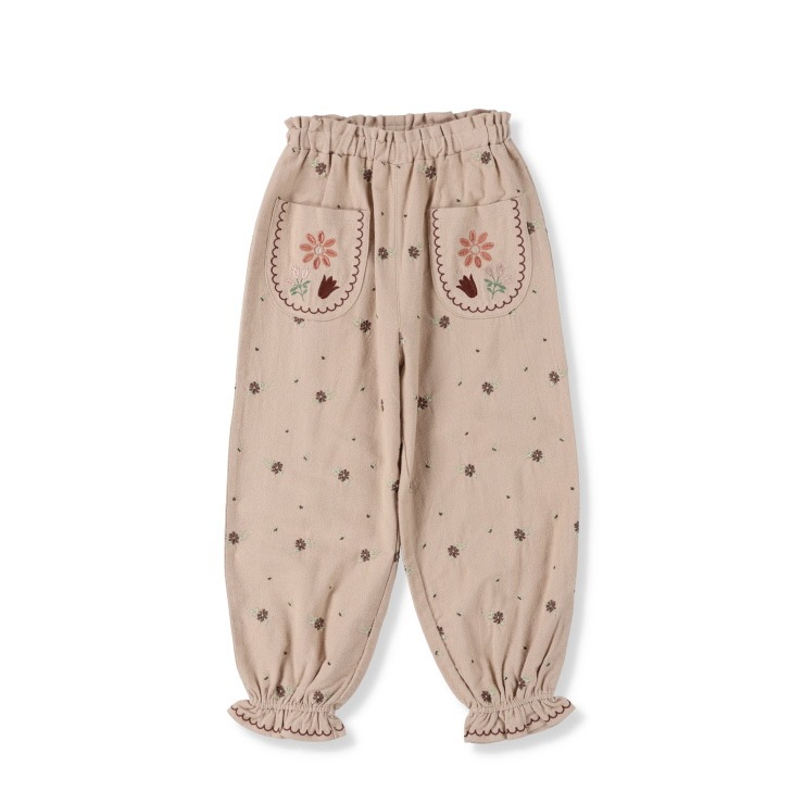 お花の刺しゅうときゅっと絞られた裾がかわいいボトムです。