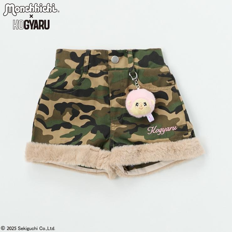 モンチッチのふわもこチャームがセットになったファー付きショートパンツ。