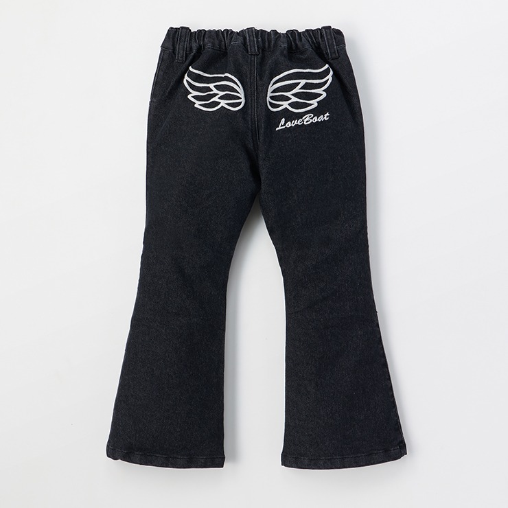 お尻羽刺しゅうがおしゃれなフレアデニムパンツです。