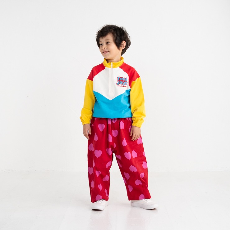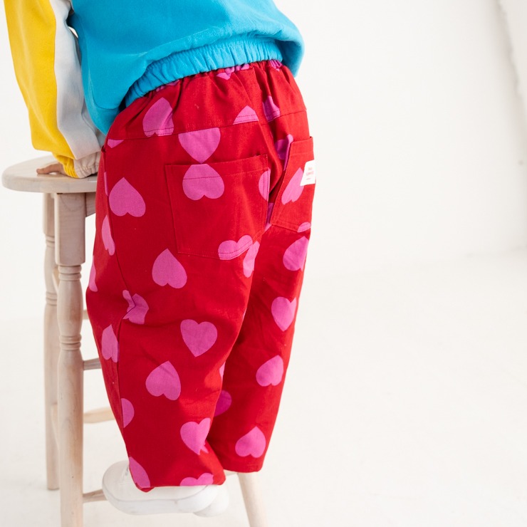 カラー使いがかわいい大きなハートがいっぱいの総柄プリントになっています。