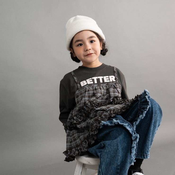 ダボっとした丸みのあるシルエットにフリルデザインがかわいいアクセントになっています。