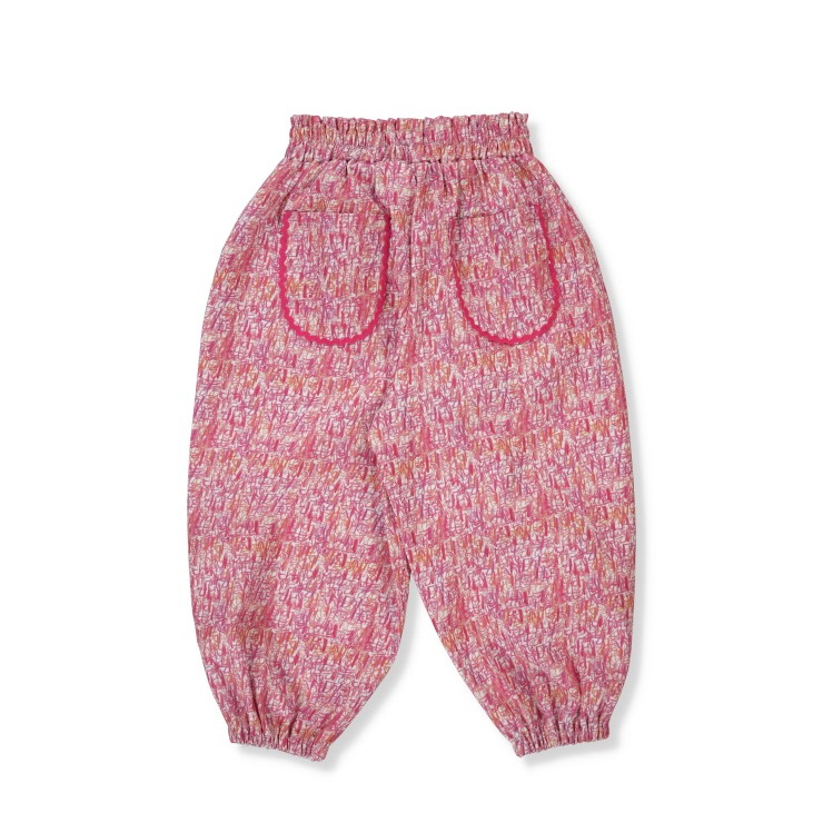 ウエストと裾にゴムが入っていて履きやすいボトムです。