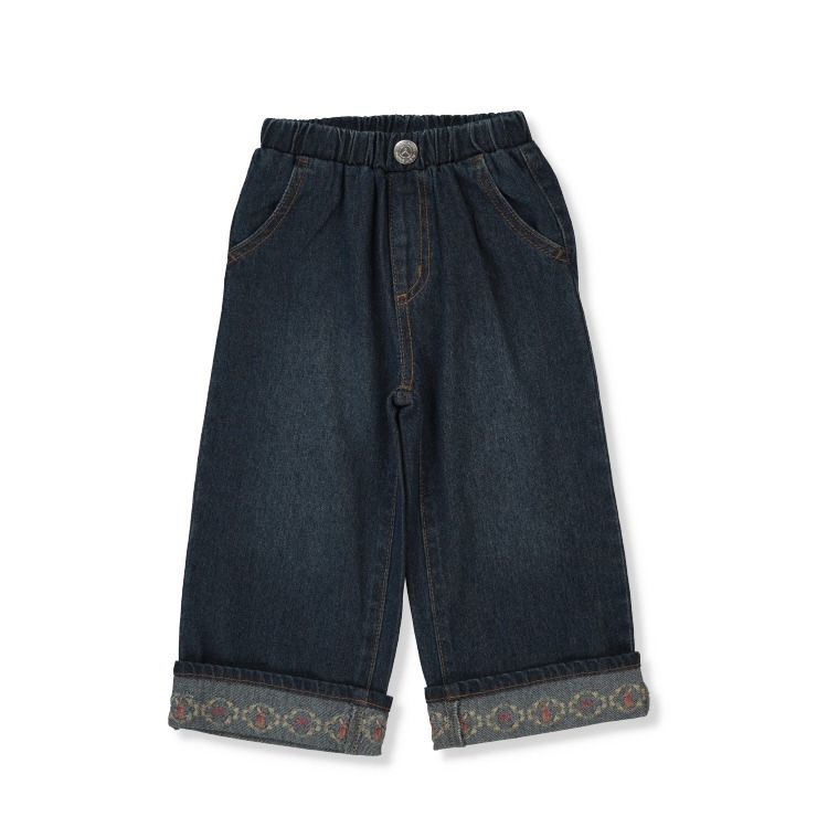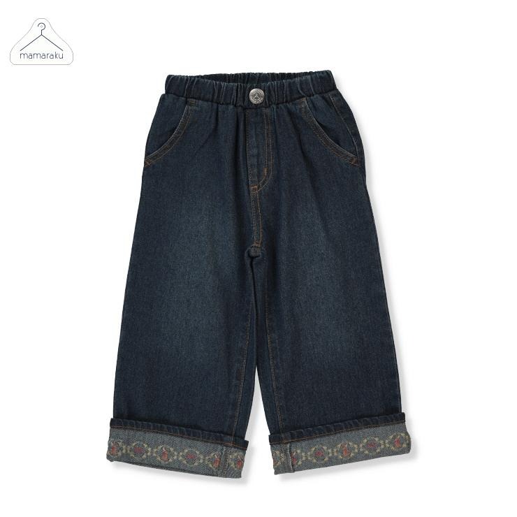 裾とポケットの刺しゅうがキュートなデニムパンツです。