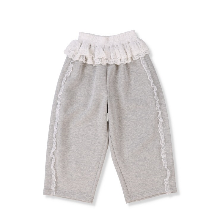 ウエスト部分の2段フリルが目を惹くスウェットパンツです!
