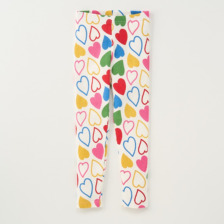 ハートがいっぱいのカラフルな総柄プリントがかわいいです。