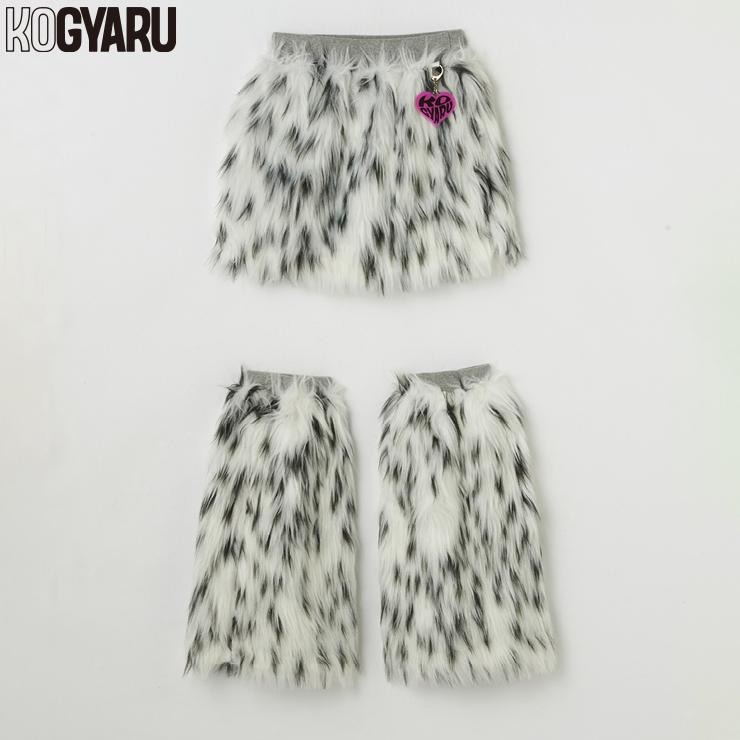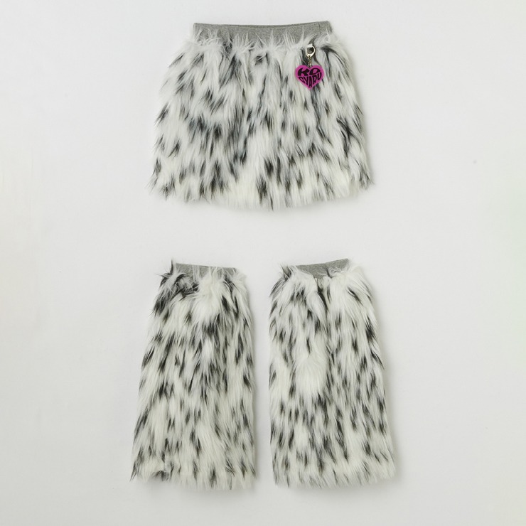 ダルメシアン柄のファー素材のスカパンとレッグカバーのセットです。