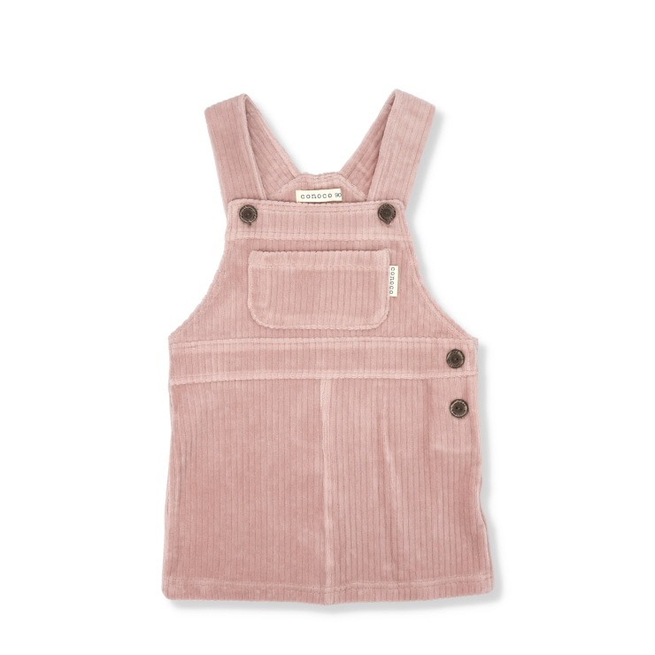 柔らかなニットコールのジャンパースカートは、秋冬のおしゃれにぴったりの暖か素材。肩とサイドのボタンが可愛らしいアクセント。インナーを変えるだけで印象が変わり、様々なスタイリングを楽しめます。カジュアルながらも上品な雰囲気で、お出かけにも普段使いにも活躍する一枚です。