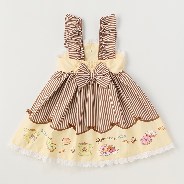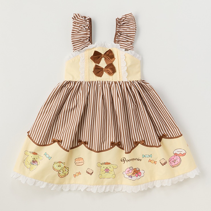 『ポムポムプリン』をイメージしたイエローとブラウンのストライプ柄がかわいいワンピースです。