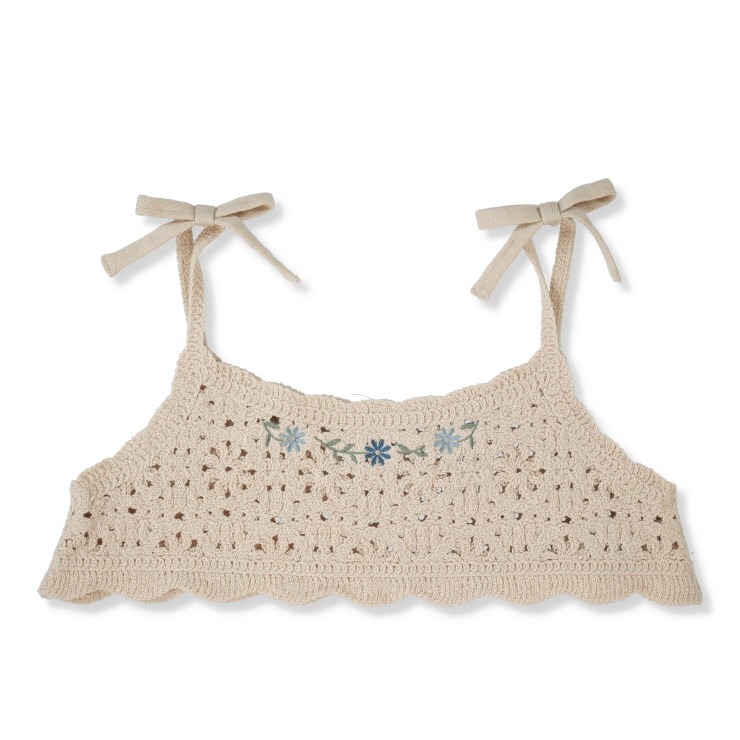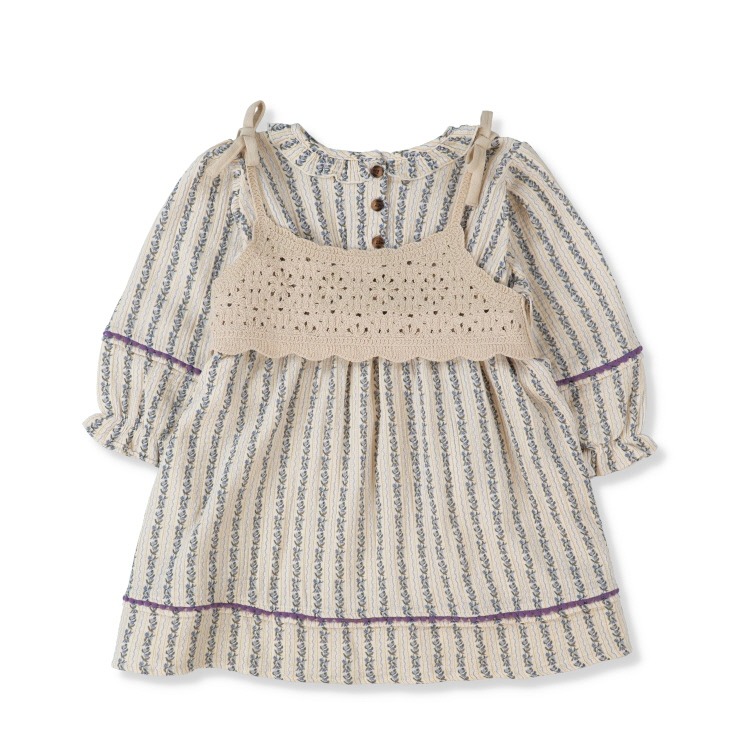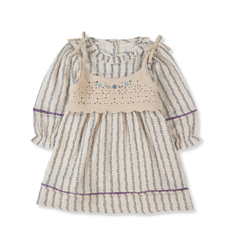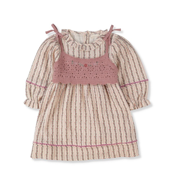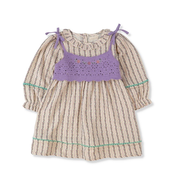 かぎ針編みビスチェとシックな花柄のワンピースがセットになっています。