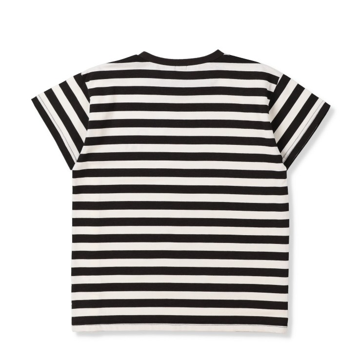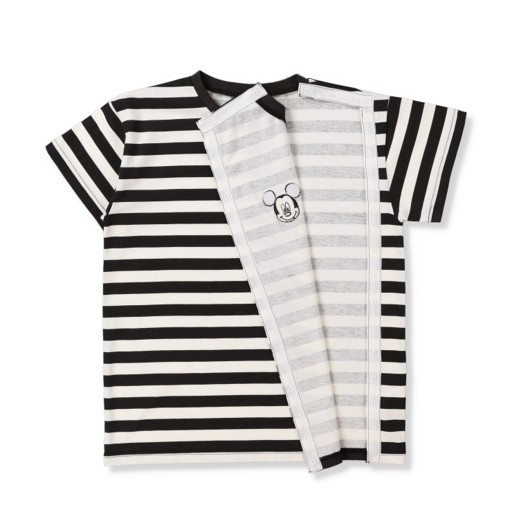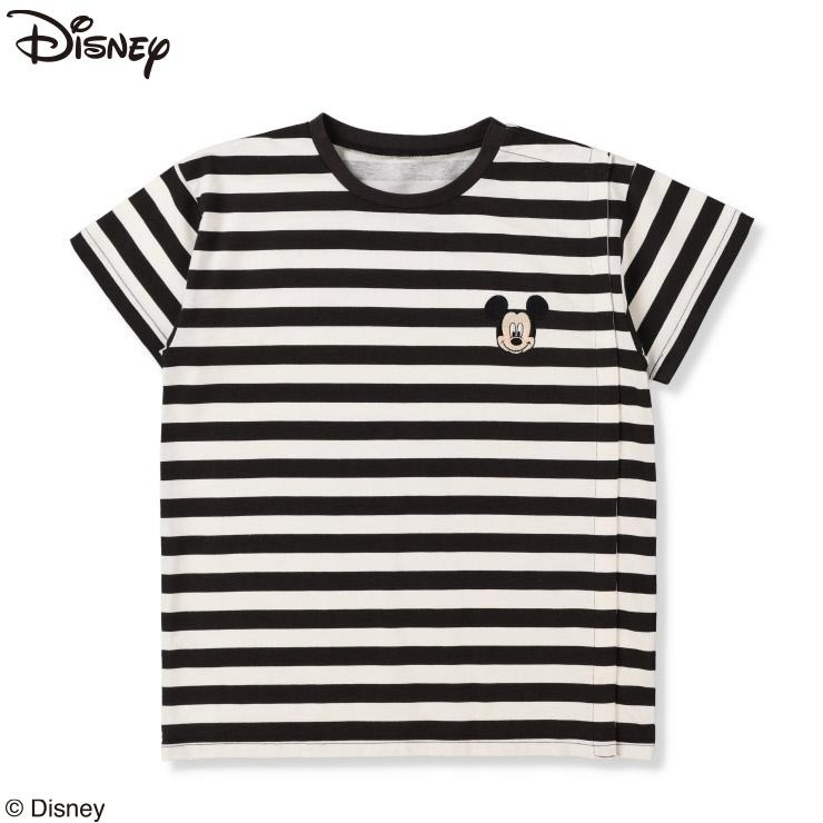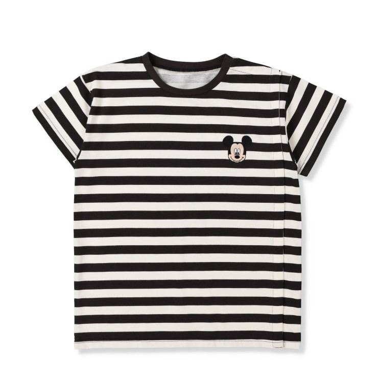 ボーダープリントにミッキーの刺繍がポイントのTシャツです。