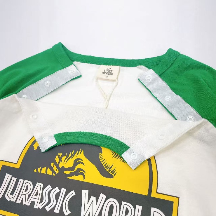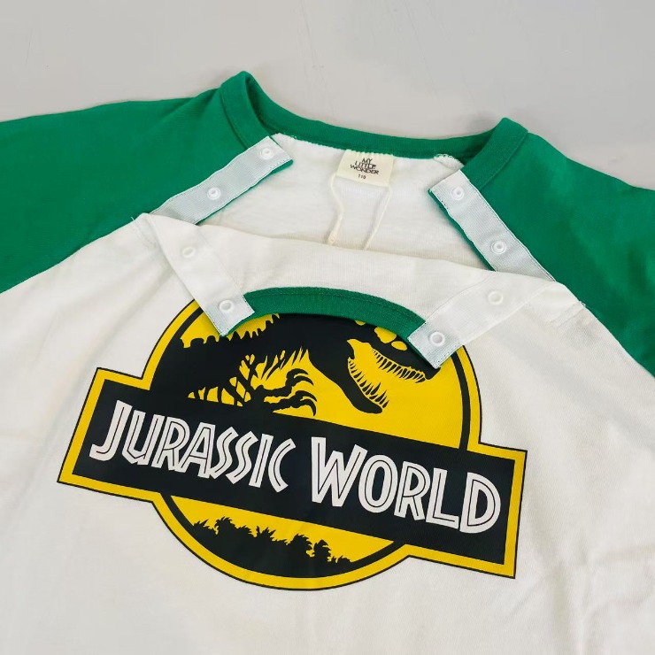 『ジュラシックワールド』の大きなロゴと恐竜のプリントがかっこいいです。