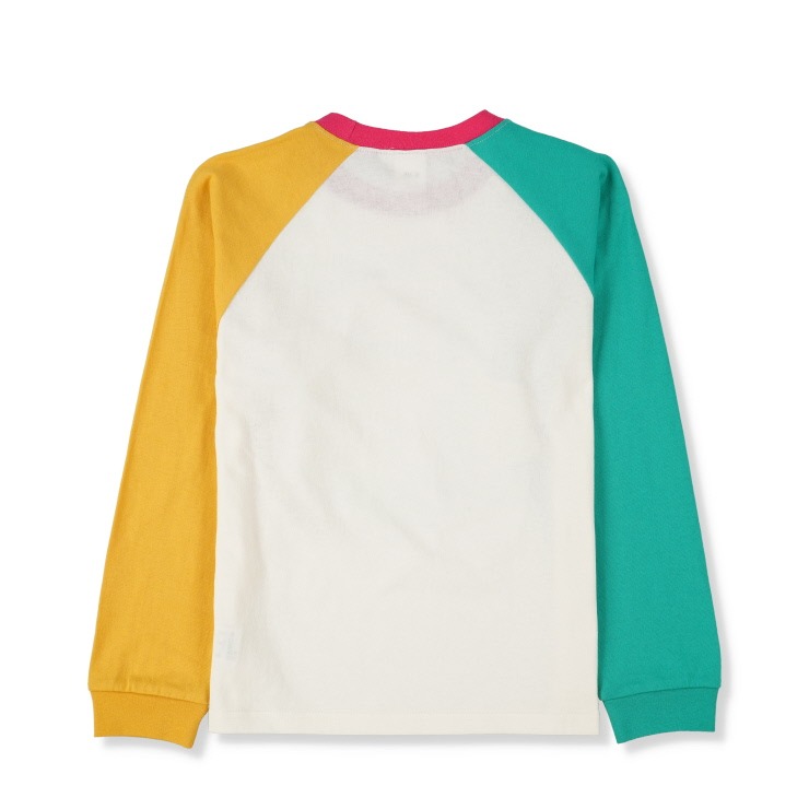 袖配色デザインのTシャツです。カクレモモジリ、リトルハナガシラがプリントされています。