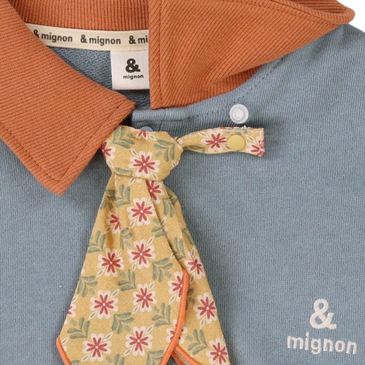 柄のスカーフをまいたようなタイがついたおしゃれなデザインです。