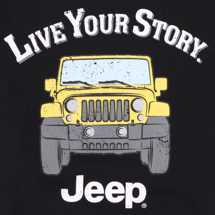 JEEPの車が印象的で、かすれラバープリントを用いることでよりヴィンテージ感を出しおしゃれに着こなせます。