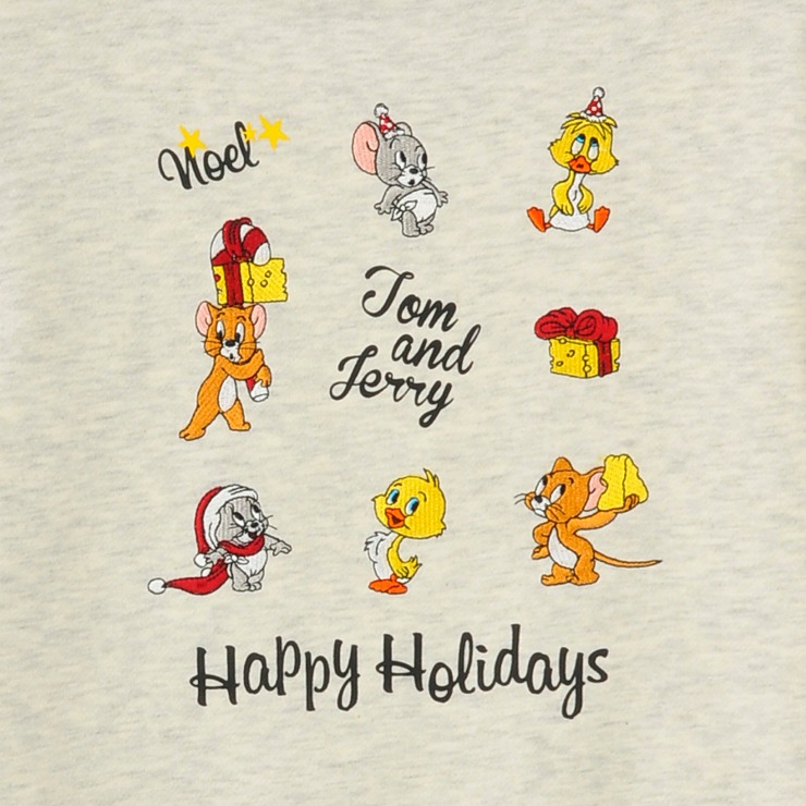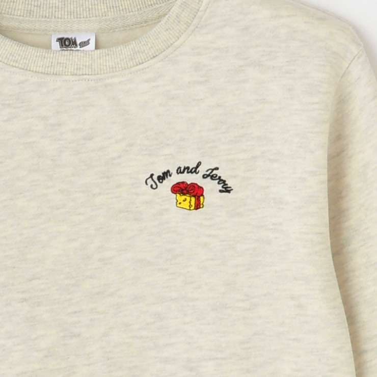 「Tom and Jerry」ジェリーとタフィのクリスマスモチーフを刺しゅうした、リサイクル綿を使用したトレーナーです。