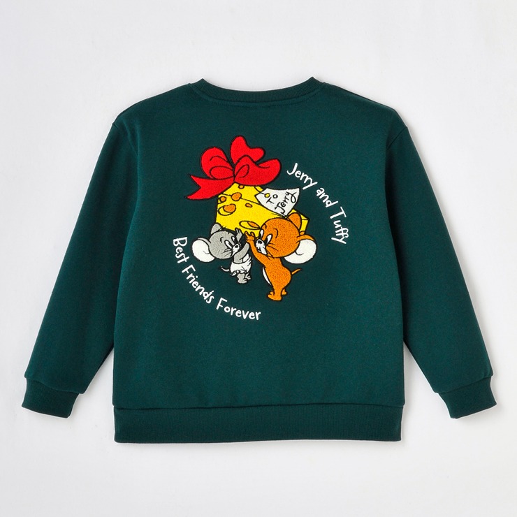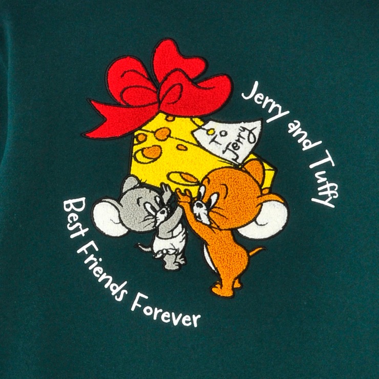 「Tom and Jerry」ジェリーとタフィのクリスマスモチーフを刺しゅうした、リサイクル綿を使用したトレーナーです。