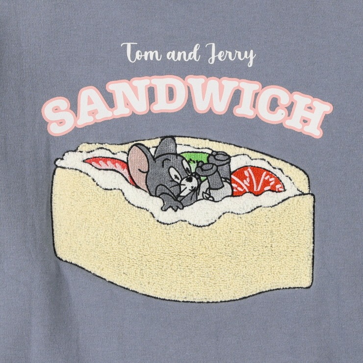 トムとジェリー「タフィー」のサンドウィッチモチーフ刺しゅうトレーナーです