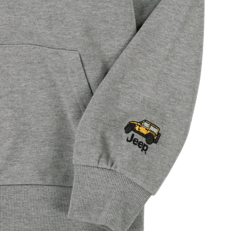 胸のロゴや袖口の車の刺しゅうなど、Jeepブランドならではの遊び心あるデザインが魅力的です。